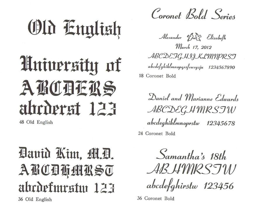 | Please contact us for assistance in choosing a type font that is best for your application. Remember Choose Type Carefully because Type is NOT returnable. |