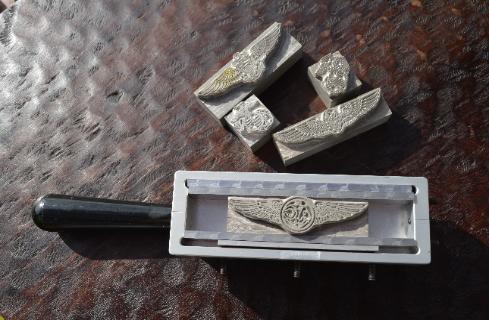 | Originally the USCG Kingsley Machine was the exclusive hot stamping machine recommended by GSA for imprinting leather name tags for the military. This equipment has been discontinued. Please see below for an excellent replacement and an even better machine. |