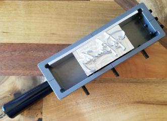 | 10 x 12 Base Plate Hot Foil Stamping Machine Accessories This Base Plate allows for more flexibility in Hot Foil Stamping your items. It gives you a back and side stop. The stops can be set to position larger work under the head for accurate placement of the Hot Foil Imprint. We find when using the machine here in the shop, it allows us to have two long sides in which to feed the work into allowing us to line up larger items, bibles and leather good with accuracy and ease. |
