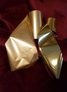 Hot Stamping Foils Most used is the Matt Gold that resembles real Gold Shown here is gold in Matt on the left and the Shiny Gold on the Right |
