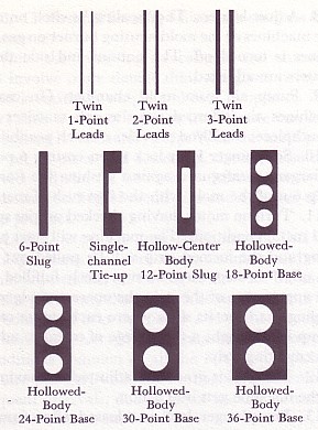 | Los cables y Slugsused en el espaciamiento ... Los cables y las babosas son material de la tira separación de metal. Se utilizan para el espaciamiento de línea o en cualquier lugar de tiras de material de separación se requieren. Echamos material de la tira en varios espesores que van from2 a 36 puntos .* El material que es de 6 puntos o menos se llama conduce, los 6 a 36 puntos se llaman las babosas. Contacte con nosotros para precios y disponibilidad. Carreras especiales de material están disponibles durante nuestro proceso de fabricación se ejecuta |