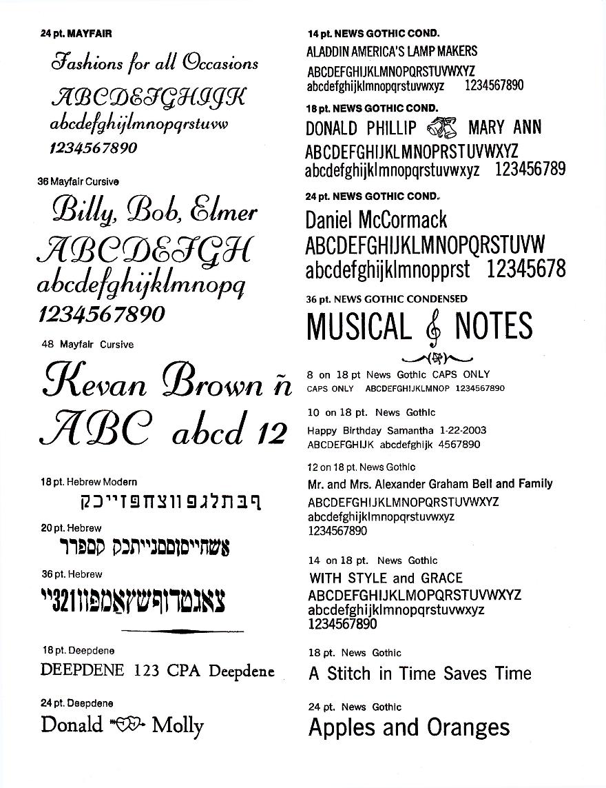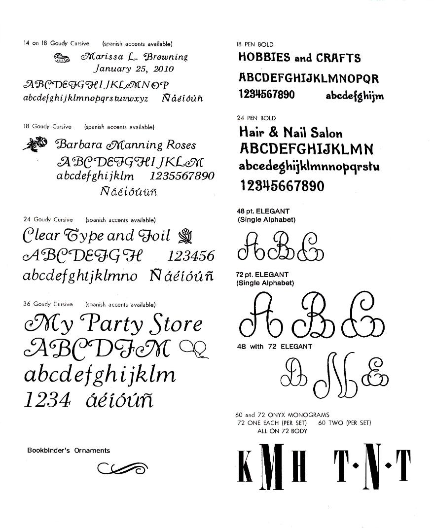 Please contact us for assistance in choosing a type font that is best for your application. Remember Choose Type Carefully because Type is NOT returnable. |